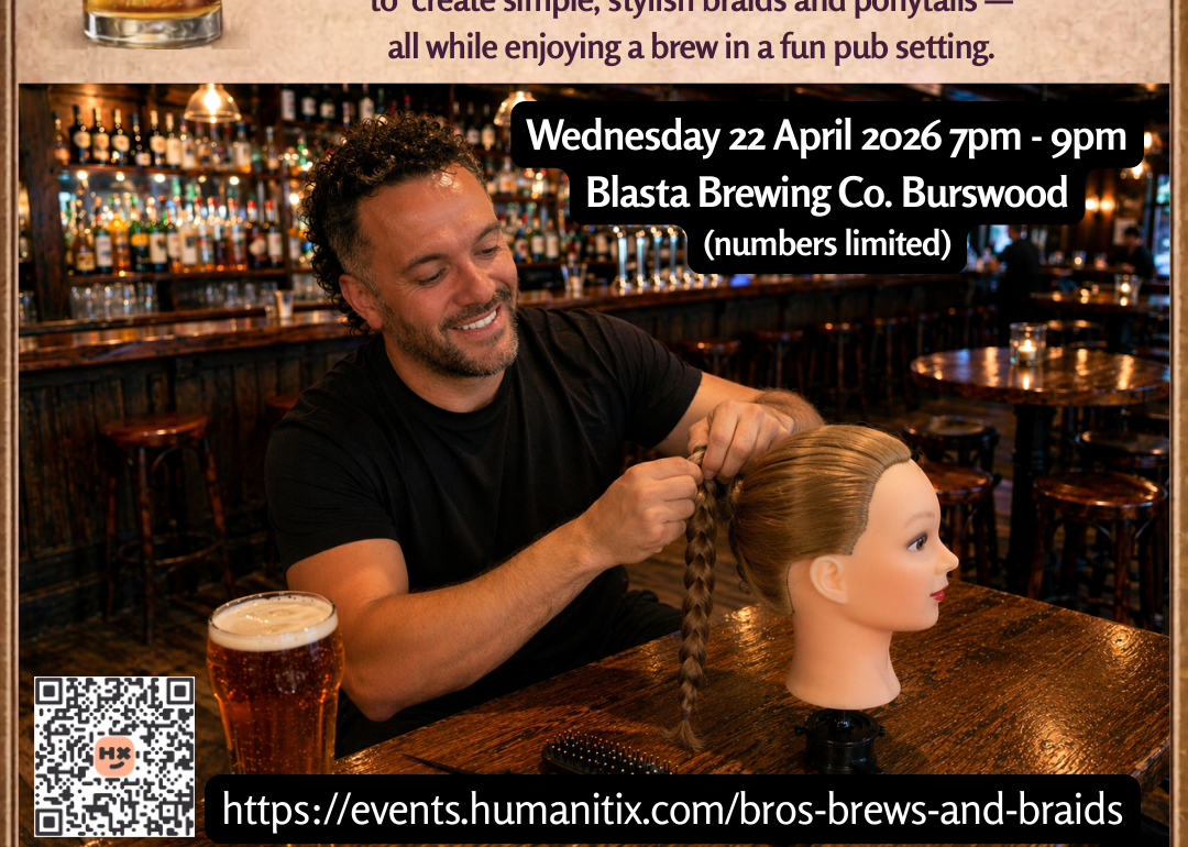 BUY TICKETS HERE: https://events.humanitix.com/bros-brews-and-braids